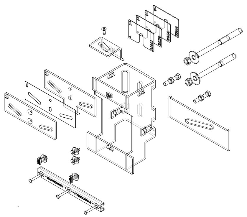 Roestvrijstalen verstelbaar verankeringssysteem voor prefab betonnen gevelelementen.