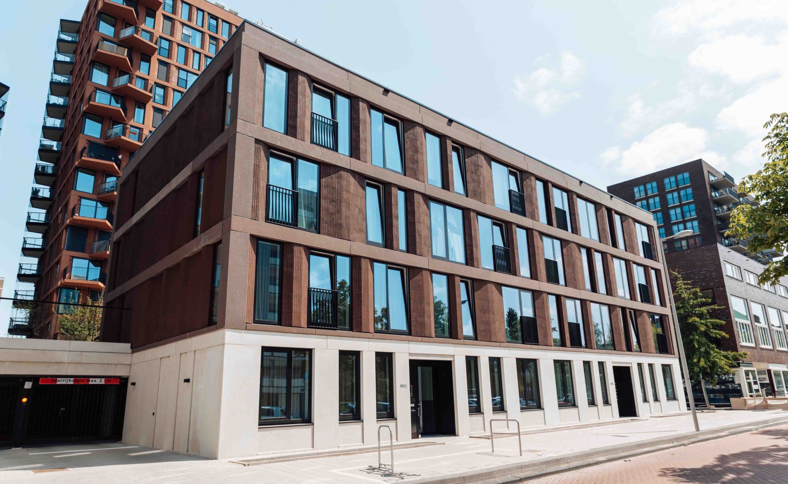 Appartementengebouw aan de Naritaweg in Amsterdam, voorzien van gevelverankering door Pohlcon Gevelverankering.